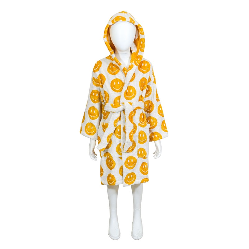Детски халат Smile на марката BULGARIA TEX с емотикони усмивки, подходящ за деца на възраст 4-6 години.