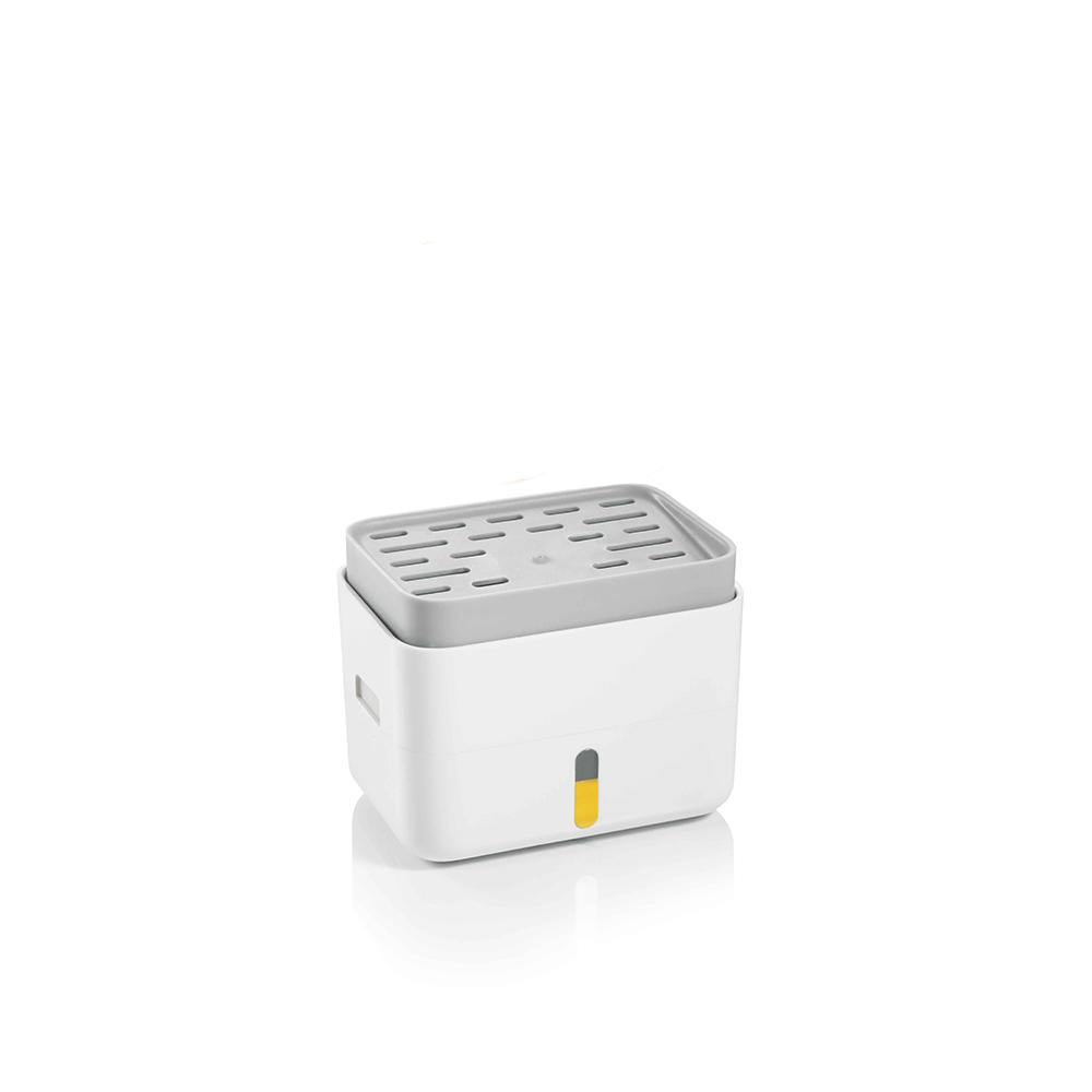 Предназначен за съхранение на гъба за почистване на съдове и за дозиране на препарат - аксесоар за организиране на пространството около мивката 2 в 1.