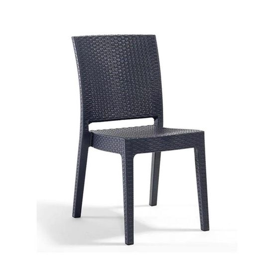 Изработен от висококачествен и устойчив PVC материал, столът е проектиран да издържа на различни атмосферни условия, като същевременно е изключително лесен за поддръжка. Липсата на подлакътници го прави по-компактен и позволява лесното му подреждане и съхранение, което е особено удобно за по-малки пространства. Стабилната конструкция и удобната форма гарантират дълготрайна употреба и комфорт. Този стол е перфектен както за самостоятелна употреба, така и като допълнение към маса за хранене на открито.