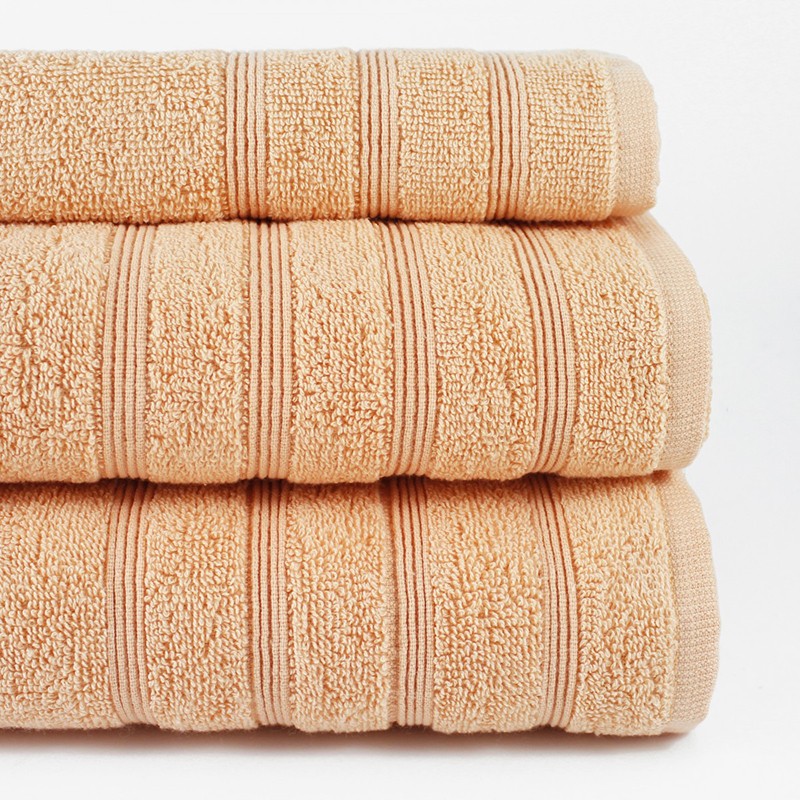 Хавлия за баня от серията Ню Уейв на марката БЪЛГАРИЯ ТЕКС в цвят праскова и с размери 70x140 см.Изработена е от 100% памук с плътност 420 гр/м².Отличава се с изключителна мекота и висока попиваемост. Класически модел хавлиена кърпа с красив бордюр за акцент.