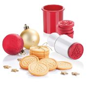 Предназначен за лесно приготвяне на декорирани домашни сладки от маслено и джинджифилово тесто. Комплектът включва печат, 6 сменяеми приставки с различни декори и кръгъл резец.