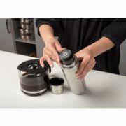 Двустенна термочаша от серията Acer на NAVA, изработена от висококачествена неръждаема стомана 304 (18/8).Благодарение на двойната стена поддържа температурата на топли и студени напитки до 12 часа.Термочашата се затваря херметически, а капакът може да се използва като чаша.Продуктът е изключително лек, идеален за офиса, плажа, при пътуване, на къмпинг и всякакви дейности на открито.Подходящ е за съдомиялна машина.Термочашата е с диаметър 8 см, височина 32 см и вместимост 1 л.*Времето за поддържане на температурата може да варира в зависимост от количеството на съдържанието, температурата на напитката или температурата на външната среда.