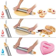 Без пръстените може да се използва като ролер за теста с различна дебелина. Когато се напълни с топла или студена вода, точилката може да се използва за бързо разточване на тесто и фондани на перфектни листове.