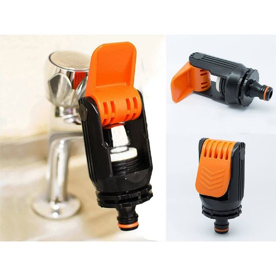Универсален регулируем конектор от серията Black Line на марката BRADAS, който може да се монтира на чешми и някои видове смесителни батерии, без да се използва резбово съединение.Изработен е от висококачествена пластмаса, устойчива на UV лъчи, в цвят черно/оранжево.Конекторът е с приблизителни размери: 10.5х5х5 см.Просто решение как да включите маркуч с бърза връзка към смесител.